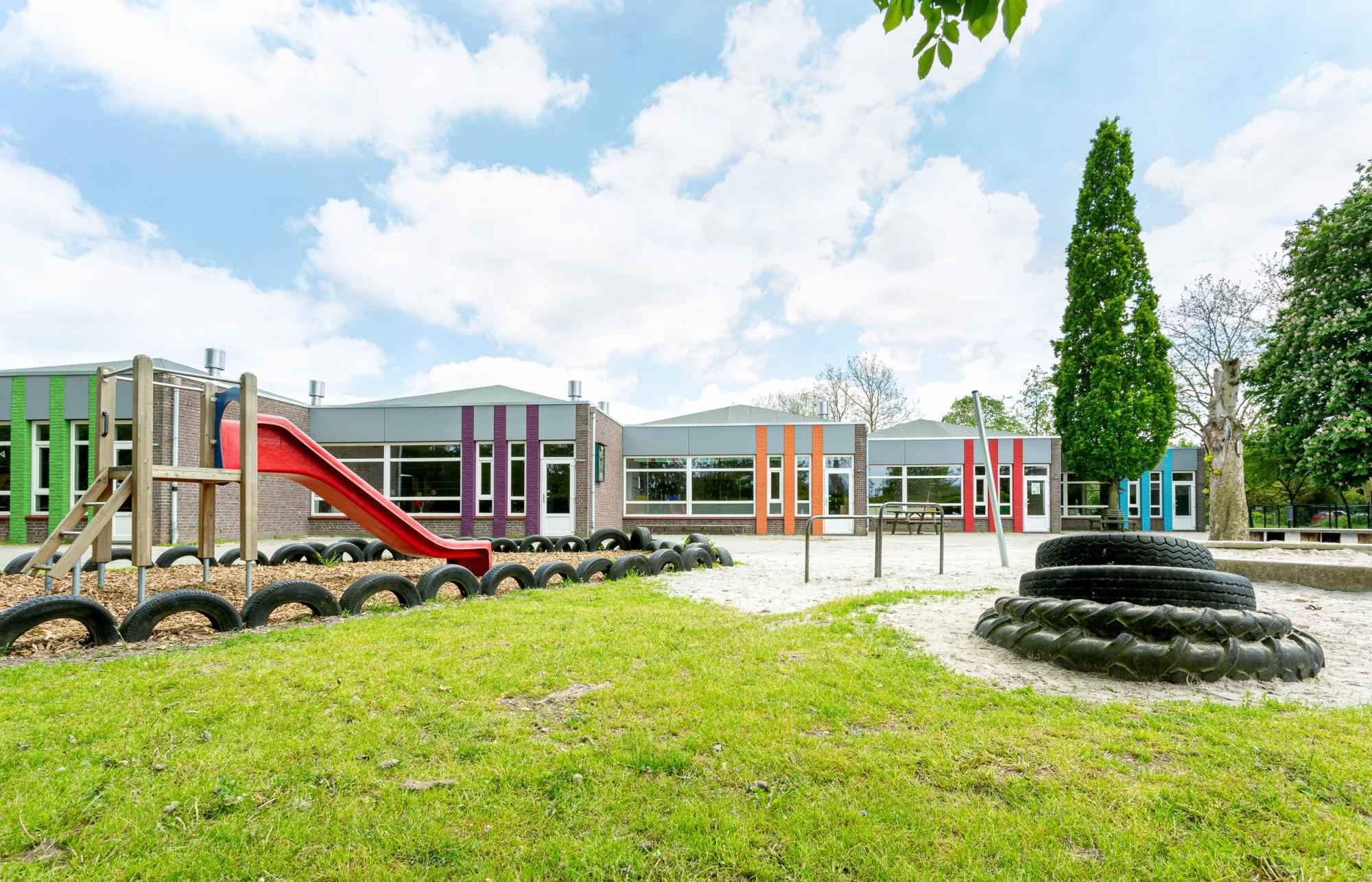 Als je ons gebouw binnenloopt, ervaar je meteen de rust en de ruimte. De brede gangen en ruime lokalen zorgen ervoor dat onze kinderen zich gemakkelijk door het gebouw kunnen verplaatsen. Daarnaast zijn er voldoende werkplekken voor alle kinderen om rustig te kunnen werken. Onze grote gemeenschappelijke ruimte delen wij met Spring Kinderopvang. Deze ruimte wordt gebruikt voor verschillende (thematische) activiteiten, maar dient ook als werkplek voor onze kinderen.